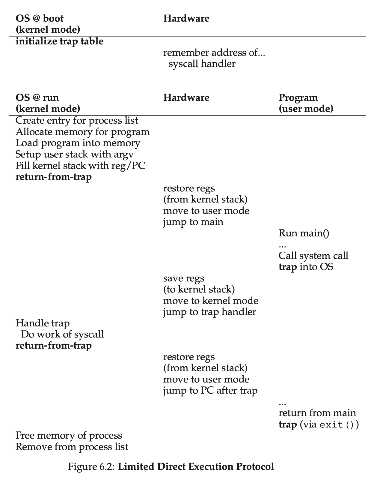 exec() 会从可执行程序中加载代码和静态数据,并覆盖自身,堆栈等内存空间也会初始化,然后 OS 执行该程序,将参数传递给该进程。
